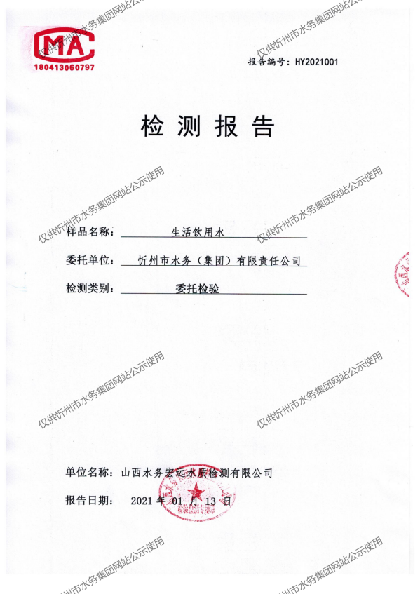 忻州城區(qū)公共供水水源水、出廠水、管網(wǎng)水、管網(wǎng)末梢水2021年1月份水質(zhì)信息公示