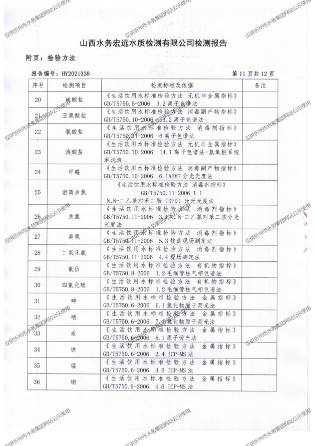 忻州城區(qū)公共供水水源水、出廠水、管網(wǎng)水、管網(wǎng)末梢水2021年11月份水質(zhì)信息公示